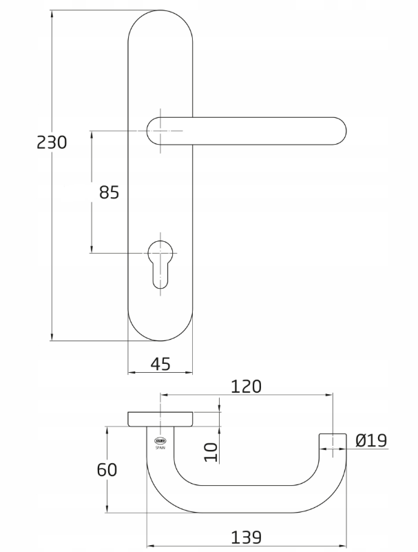 AMIG Klamka AMIG 3PXB85 wkładka 85mm INOX